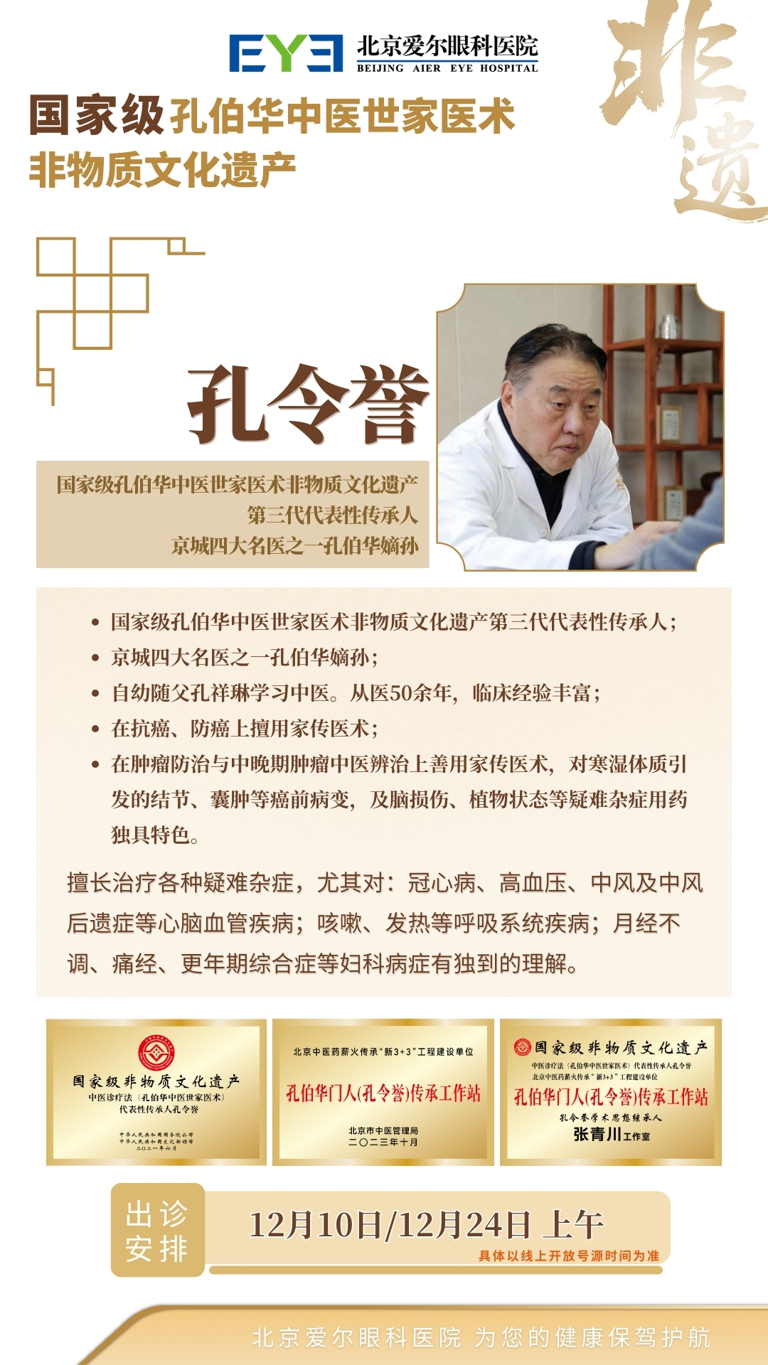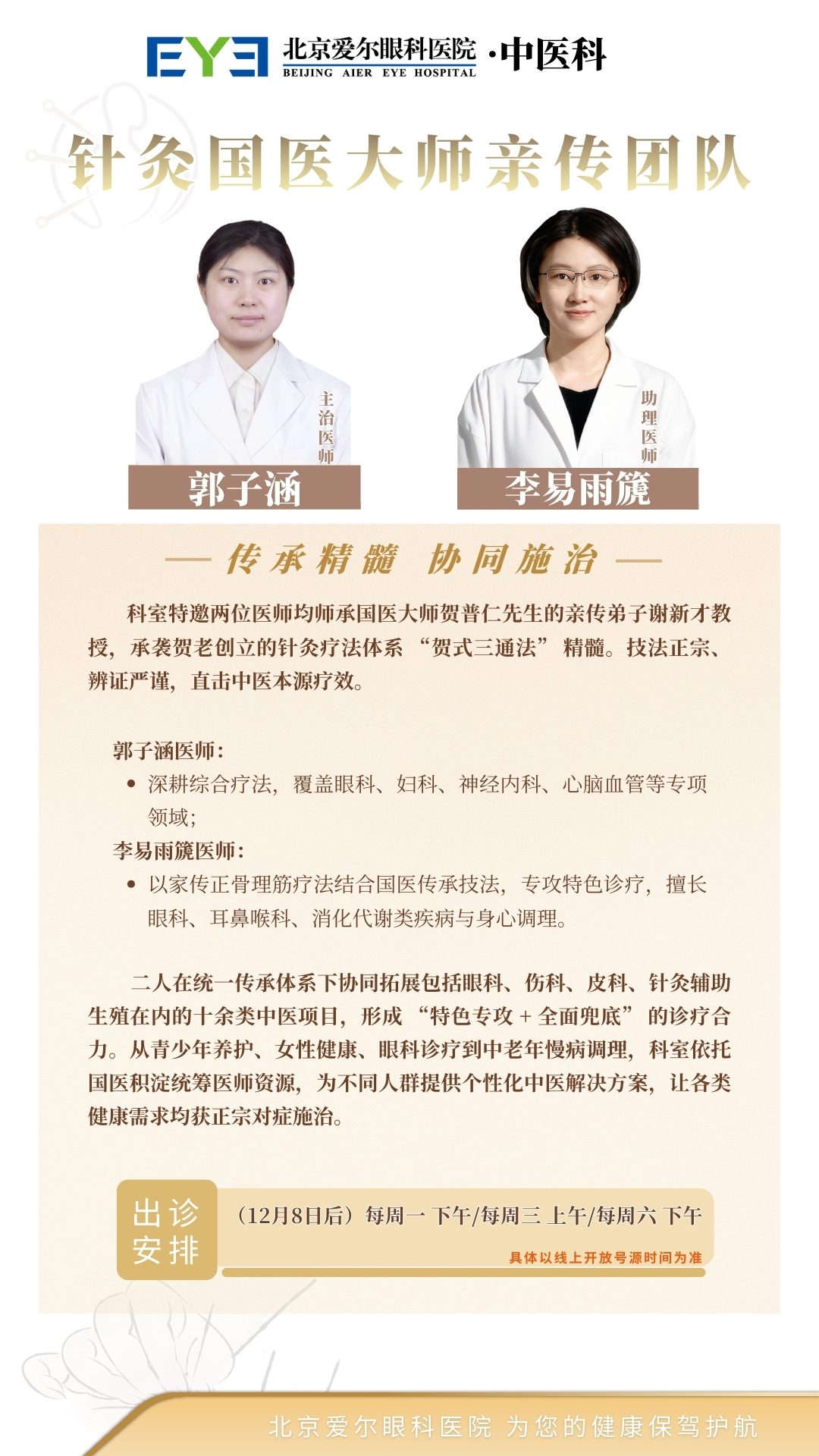 北京爱尔眼科医院中医科12月出诊安排